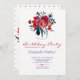 Modelo de convite de aniversário feminino floral com um belo rosa de pénia, buquê de vermelho, burgundy, rosa-blush, magenta, marinho azul e violeta-roxo, flores boêmicas, penas e folhagem com um rico moderno e comutável texto de roteiro. — O convite é ideal para o primavera boêmico ou para o floral floral ao ar livre/jardim de jardim elegante em qualquer festa de aniversário etária.
