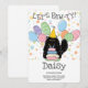 Faça o seu aniversário preto do gato persa especial com o nosso adorável design para o tema do gato com um chapéu de festa e balões coloridos. Personalize este convite de aniversário divertido com o nome e a idade do seu gato para uma celebração de malabarismo!