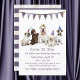Celebre o aniversário do seu cachorro com esses filhotes fofos! Frente tem cinco filhotes (cãozinho, labrador, buldogue, recuperador de ouros, e um jack russell terrier) com chapéus de festa e uma bandeira de abstrato roxo empinada sobre fundo branco sólido. O dorso tem mármore com ouro com listras roxas. Modelos criadas para você em roxo, mas podem ser alteradas para qualquer cor clicando em personalizar outro link. Precisa de ajuda? Use o recurso Chat ou me envie um e-mail, e terei todo o prazer em ajudá-lo.