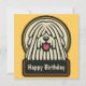 Cachorro branco bonito - um Komondor ou outro - convida você a uma festa de aniversário. Textos totalmente personalizáveis.