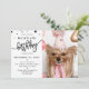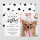 Festa de aniversário de Pet Dog de Foto Personalizada Rosa com design de Estrelas. Adicione sua foto e texto a esta design simples e moderna. A palavra "aniversário" em uma fonte popular com estrelas bonito ao redor. Foto cortesia de @4yorkiesinvegas Design ©Marisu Valencia