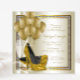 Gelado e convite de aniversário de ouro, com belos calçados de salto alto, brilho dourado, balões de ouro, champanhe e pérolas sobre fundo de creme e de diamante dourado. Este elegante marfim creme e convite de aniversário dourado é facilmente personalizado para o seu evento simplesmente adicionando os seus detalhes no estilo de letra e cor, redação e layout da sua escolha. Você também pode mover ou excluir o champanhe e os balões. Esta é uma design impressa sem joias reais, pérolas, brilho, etc.