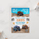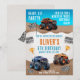 Aumente a emoção com este convite de festa de aniversário de caminhão monstro! Perfeito para uma celebração emocionante, este design apresenta caminhões rugindo, bandeiras xadrez e troféus para definir o tom de uma festa cheia de ação.