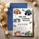 Atenção a todos os pequenos foliões! Preparem-se para aumentar a diversão com o nosso convite de aniversário 'BOOM, CLASH É UMA BATALHA DE MONSTROS DE CAMINHÕES'! Adornado com adoráveis e vibrantes caminhões monstro, este convite com tipografia moderna convida você a se juntar à celebração. Vamos rugir entrando no terceiro ano de vida com uma festa de aniversário épica! Esses convites podem ser impressos e compartilhados com seus amigos ou baixados digitalmente para uma experiência de planejamento de festa fácil. Não perca a chance de se divertir monstruosamente nesta festa de terceiro aniversário!