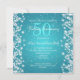 Desenho elegante de "Aniversário de 50 anos de Casamento" com efeito de Brilho de Inverno no céu estrelado noturno em fundo Azul, e nome personalizado e texto de detalhes. Impressione sua família e amigos com este design moderno e elegante.
