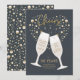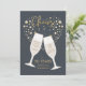 Convite de festa de aniversário com elegância retrô apresenta tipografia dourada "Brindes a 50 anos" e taças de champanhe com bolhas que formam um coração. Mostrado aqui como um convite de aniversário de cinquenta anos, mas você pode personalizá-lo para qualquer número de anos que se aplique à sua ocasião. Brindes a você!