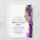 Convites de Aniversário de Casamento Romântico com Flores em Tons de Roxo e Purpurina Dourada em Aquarela