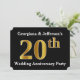 Este design de convite apresenta o número ordinal "20º" com uma aparência semelhante a ouro falso. Também apresenta nomes personalizados. Poderia ser usado para a festa de aniversário de casamento de vinte anos de um casal.