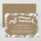 Este convite de aniversário de casamento de 25 anos, elegantemente casual, apresenta linda caligrafia, lindas flores azuis e brancas, um design de tipografia que diz "Casados (há vinte e cinco anos!)", e um fundo de papel kraft impresso. O convite de aniversário floral rústico é perfeito para uma celebração casual de festa no jardim da casa.
