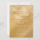 Personalize este convite de aniversário de casamento moderno, na moda, gradiente de ouro. Este convite de festas de 50º aniversário de casamento está pronto para você adicionar os nomes dos casais e a data da festa de aniversário de casamento, endereço e detalhes do local e outras informações, conforme necessário. Todo o texto é editável. Há também modelo de texto adicional no verso, se necessário. Este cartão de tons de ouro tem um roteiro branco simples e elegante dizendo "comemorando 50 anos" que pode ser editado para qualquer número para outro ano de aniversário. A ilusão de luzes brilhantes ou de fadas é criada por um fundo de gradiente de ouro. Isto não é uma folha de ouro real, mas um efeito de ouro bronzeado. Personalize este convite de aniversário para uma maravilhosa festa de aniversário de casamento do ouro.