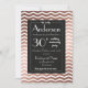 Rosa dourado em padrão geométrico moderno, moldura preta em design simples e elegante em zigue-zague. Cartão de convite de festa de aniversário de casamento moderno de 30 anos em rosa dourado.