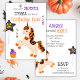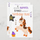 Este adorável convite de aniversário do Halloween apresenta o mais bonito unicórnio em abóboras vestidas a cores do Halloween e outras coisas do Halloween. Personalize facilmente as informações do seu partido em texto brilhante e vibrante.