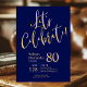 Este fabuloso convite de aniversário de 80 azul-marinho, que diz "Celebrado de Vamos!" numa letra moderna em ouro, seria perfeito para celebrar o homem no aniversário de 80 da sua vida. Este convite é moderno, na moda, moderno e contemporâneo. Para ver seus convites personalizados, selecione "Personalizar este modelo" e digite suas informações. É super fácil!