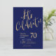 Este fabuloso convite de aniversário de 70 azul-marinho, que diz "Celebrado de Vamos!" numa letra moderna em ouro, seria perfeito para celebrar o homem no aniversário de 70 da sua vida. Este convite é moderno, na moda, moderno e contemporâneo. Para ver seus convites personalizados, selecione "Personalizar este modelo" e digite suas informações. É super fácil!