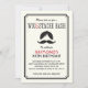 convite de aniversário de peruca e bigode divertido, com um quadro preto com texto preto e vermelho pálido personalizável, e um bigode engraçado com peruca e barra de mão. Fundo creme. Escolha entre creme ou listras no verso. Diversão de design para festas de aniversário. Para obter solicitações personalizadas ou ajuda para personalizar, use o link de contato de armazenamento acima.