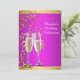 Óculos de champanhe de ouro, magenta e convite de aniversário de ouro. Este belo convite de aniversário de champanhe magenta e dourado é facilmente personalizado para o seu evento adicionando os detalhes do seu evento no estilo de letra, cor e redação da sua escolha.