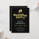 O convite de aniversário moderno apresenta champanhe dourado com texto de tipografia ousado "festa de aniversário" em fundo preto. Personalize os convites de festa de aniversário adicionando seu nome e detalhes da festa.
