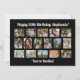 Um quadro negro elegante com 16 das suas fotos faz um belo presente de fotos para qualquer garoto ou garota de aniversário! Crie seu próprio presente personalizado de colagem de aniversário de fotos para qualquer idade! Adicione dezesseis de suas fotos digitais personalizadas, horizontais e verticais. Carregue as suas próprias fotos de qualquer dispositivo para criar este impressão de fotos com o cheio de cores que chama o olho. Fundo preto sólido moderno com sua linha de mensagem especial de texto e nome personalizado para adicionar um toque pessoal! Design e crie seu próprio presente de decoração de festas de aniversário surpresa.