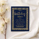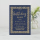 Um simples azul e ouro moderno, marinho e inclui um elegante design geométrico de confete, ouro e marinho, com tipografia escrita à mão em ouro. Este Convite de aniversário é o impressão perfeito para qualquer evento especial de uma mulher. Personalize este design com seus detalhes e monograma inicial. Todas as designs são impressas.
