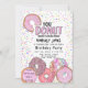 Este Convite de aniversário temático foodie giro e giro é a escolha perfeita para a sua menina. Ele apresenta um design de ilustração de aquarela desenhada manualmente e pintada. Os elementos incluem rosquinhas cor-de-rosa-pincelado e cor-de-rosa-borbulhante revestidas com bordas coloridas do arco-íris e vários tipos de icings sobre um simples fundo branco. A paleta de cores usada é uma escolha popular para meninas, incluindo cor-de-rosa, roxo, coral, pincel e verde-rosa. O plano de fundo e a cor do texto estão definidos, mas podem ser alterados clicando no botão "personalizar".