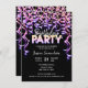 Personalize esses cartões de Convite de aniversário modernos para sua próxima celebração. FESTA em luzes de cinema brilhantes com confete e correias coloridas (rosa, azul, amarelo, laranja, roxo). Aniversário em cartas de roteiro. A parte traseira do cartão tem CHEERS para o nome (editar). Pode ser usado para garoto (homens) ou garota (mulheres) Todo texto pode ser alterado (fonte, tamanho, cor).