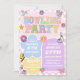 Este é um Convite de aniversário Retro com Letra de Correção Varsity de pré-disquete da Boliche!