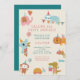 Animais de festa bonitos e coloridos com Convite de festas de Aniversário de criança de chapéus de festas. Os animais incluem crocodilo, macaco, leão, elefante, coala, tartaruga de camaleão, preguiça