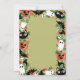 Convite de aniversário de Halloween com uma estrutura assustadora de Halloween com abóboras, gatos, fantasmas, crânios, ferramentas, morcegos e folhas de outono contra um fundo verde-oliva.