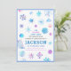 Convite de festas de Aniversário de criança de inverno com flocos de neve brancos