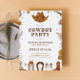 O tema do Cowboy é o convite de aniversário dos rapazes. Símbolos de caubói bordam em tons castanhos em um fundo branco.