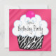 Convites Festa de aniversário de Cupcake de Zebra Rosa Quen