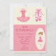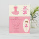 Esse convite de aniversário personalizável apresenta uma pequena bailarina com seu tutu cor-de-rosa e chinelos de balé em um plano de fundo cor-de-rosa e creme e texto personalizável.