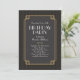 Art Deco inspirou Convite de aniversário em ouro preto, branco e plano com um padrão de na moda de ventilador no reverso. Personalize este design elegante alterando os detalhes do texto. Disponível em vários convites de festas e acessórios. Parece excelente no mate ou torne-o luxo escolhendo no papel do shimmer.