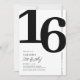 Apresentamos um convite de aniversário de 16 anos atemporal em preto e branco que combina perfeitamente o charme antigo da fonte serifada em negrito número '16' com um modelo personalizável moderno e fácil de usar. Este convite não é apenas um cartão, é um presente significativo para celebrar o marco de completar 16 anos.