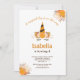 Esta frente deste belo e giro convite apresenta o texto, "Um dia mágico está a caminho" na rica laranja-abóbora na tipografia popular, juntamente com as tendas orelhas e olhos unicórnios com um chifre laranja e preto e uma coroa de flores cor-de-água rosa pintadas à mão. O nome personalizável da aniversariante aparece em laranja, seguido da idade dela e de todos os detalhes da festa, que você também pode personalizar com esta modelo. A frente do cartão é limitada no topo e no fundo por flores laranja, folhas de outono e estrelas. As costas apresentam um padrão correspondente de folhas e estrelas de outono. Este convite é perfeito para o outono ou aniversários de Halloween.