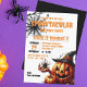 Este maravilhoso convite de aniversário de Halloween combina elementos assustadores com um talento comemorativo. Uma teia de aranha proeminente se estende pelo canto superior esquerdo, completa com uma aranha balançante. A web adiciona um toque de inquietação. No canto inferior direito, um amistoso jack-o-lanterno vestindo o chapéu de uma bruxa cumprimenta os convidados. Sua expressão caprichosa dá o tom para uma celebração divertida. Torne-o exclusivamente seu personalizando o texto e os detalhes. Quer seja uma festa de aniversário de criança ou uma reunião de adultos, este convite estabelece o humor perfeito para o Halloween!