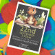 Dinossauro bonito. Festas de aniversário personalizadas, ideais para qualquer idade, adicione seu próprio texto sem custo extra - design em fundo no estilo de quadro com folhagem de floresta tropical - Convites personalizáveis impressos ou descarregáveis.