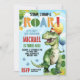 Convite de aniversário de Dinossauro Três-Rex - Este mote tremendo convite de aniversário totalmente "rugido" tem sido mais de um milhão de anos no fazer. Apresentando um forte dinossauro t-Rex pronto para festa, cercado por plantas e balões pré-históricos. Não seja um "rex nervoso" e deixe seus planos do partido se extinguirem. Vamos ajudar a sua extravagância de aniversário do dinossauro a ser um enorme sucesso "rude".