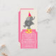 Um convite de aniversário para crianças apresentando uma ilustração de um elefante vestindo um chapéu de festa e em pé em uma plataforma. Personalize o texto sobre o tíquete cor-de-rosa na frente e atrás.