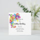 Convide convidados para a sua comemoração do dia a dia com o Convite de aniversário de Nadinhos Coloridos contemporâneos. Personalize-o com o nome pessoal da aniversariante e informações específicas sobre eventos por dia. Este convite para apresentação por dia fofo e personalizado apresenta um abstrato moderno design de espiral multicolorido no canto com um fundo branco.
