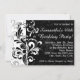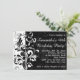 Fundo preto com sotaques brancos, fonte de espirais e remendos brotando em um design fantástico. Excelente para qualquer idade! Celebre a sua aniversário de 40 anos, ou qualquer ocasião especial. Preto com sotaques brancos, fundo de folha de rolagem floral e curva para espiral. Personalize on-line com os detalhes do evento.