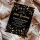 Elegante convite de aniversário para adultos com estrelas douradas para decoração em fundo negro com um modelo moderno de festa de aniversário que é fácil de personalizar.
