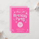 Este convite de aniversário inspirado retroativamente apresenta um fundo rosa brilhante, tipografia inspirada retroativamente. O dorso tem a mesma cor rosa clara com um padrão de faixa diagonal branca. O olhar é feminino e divertido!