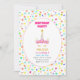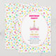 Convite de aniversário de unicórnio bonito e estrelas multicoloridas. O texto está pronto para ser personalizado.