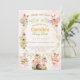 Celebre uma Festa de aniversário de Fada para uma garotinha especial com os animais bonitos Concurso de Aniversário das Pequenas Fadas. Design apresenta uma cena botânica de jardim com flores aquáticas e verde-claro, uma casinha mágica de fadas e fadas doces de animais. O elegante modelo de aniversário é fácil de personalizar e adicionar seus próprios detalhes de evento.