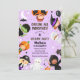 Convite à Festa de Halloween Bonita Este convite divertido apresenta uma bruxa, Dracula, um diabo, múmia, Frankenstein, esqueleto e uma criança de abóbora. As palavras "Festa de Figurino de Halloween" são escritas em letra divertida e festiva. É a maneira perfeita de convidar os amigos de seus filhos para uma festa de Halloween mestiça onde eles podem se vestir como seus monstros favoritos.