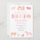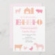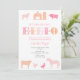 O velho MacDonald tinha uma fazenda, EIO! convites de festas de aniversários bonito cor-de-rosa e pêssego para o pátio da sua menina ou festa de aniversário de jardim zoológico.