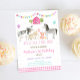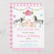 Este adorável convite apresenta animais de fazenda com balões e falsos poços de ouro.