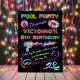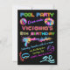 Convites de festas de aniversários de piscina neon coloridas. Possui fontes neon, brinquedos de piscina e água salpicos em fundo preto. Bares de cor neon na parte de trás. Excelente para uma garota ou um garoto! As palavras "piscina party and aniversário" não podem ser alteradas, mas podem ser eliminadas. Para fazer mais mudanças, vá para Personalizar este modelo. Na parte inferior você verá "Quer personalizar este design ainda mais? Clique em EDIT usando a ferramenta Design. A partir daí você pode mudar algumas fontes e algumas cores, mover coisas ou excluir o que você precisa.