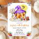 Esta linda e divertida convite de aniversário de Halloween apresenta uma casa de abóbora e animais adoráveis em vestidos de rico. O texto combina o script manuscrito e as fontes sans serif para uma aparência na moda e moderna. Arranjos de flores e teias de aranha adicionam um toque rústico e assustador. Isto é perfeito para uma festa de fantasia ou truque e tratamento.